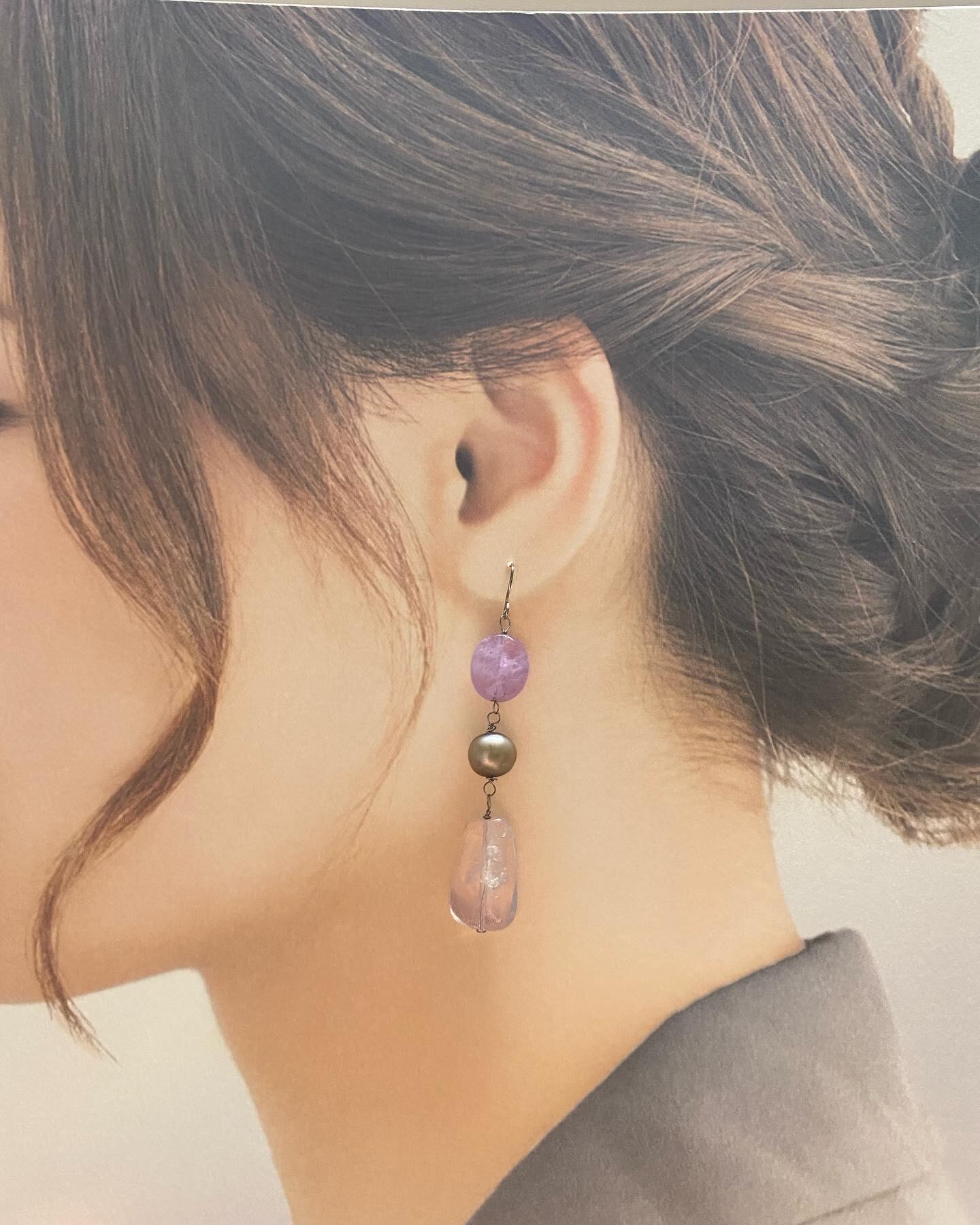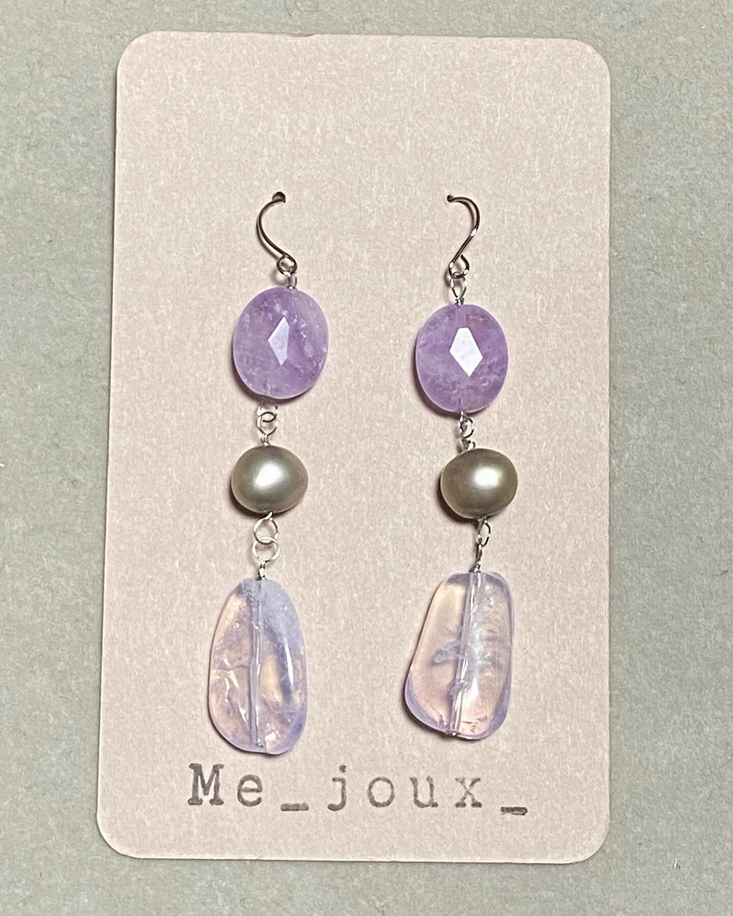 *ラベンダーアメジスト・淡水パール・スコロライトの天然石ピアスです。
