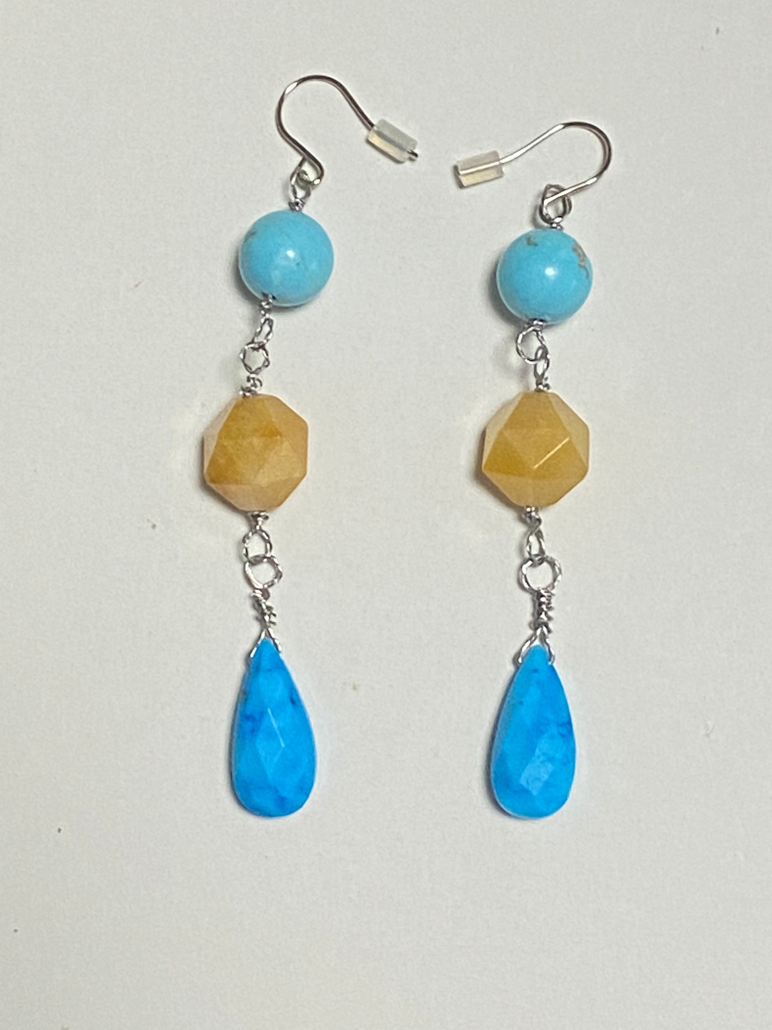 ターコイズ(練り)とスターカットのマルチアマゾナイトと合成トルコ石の天然石ピアスです。