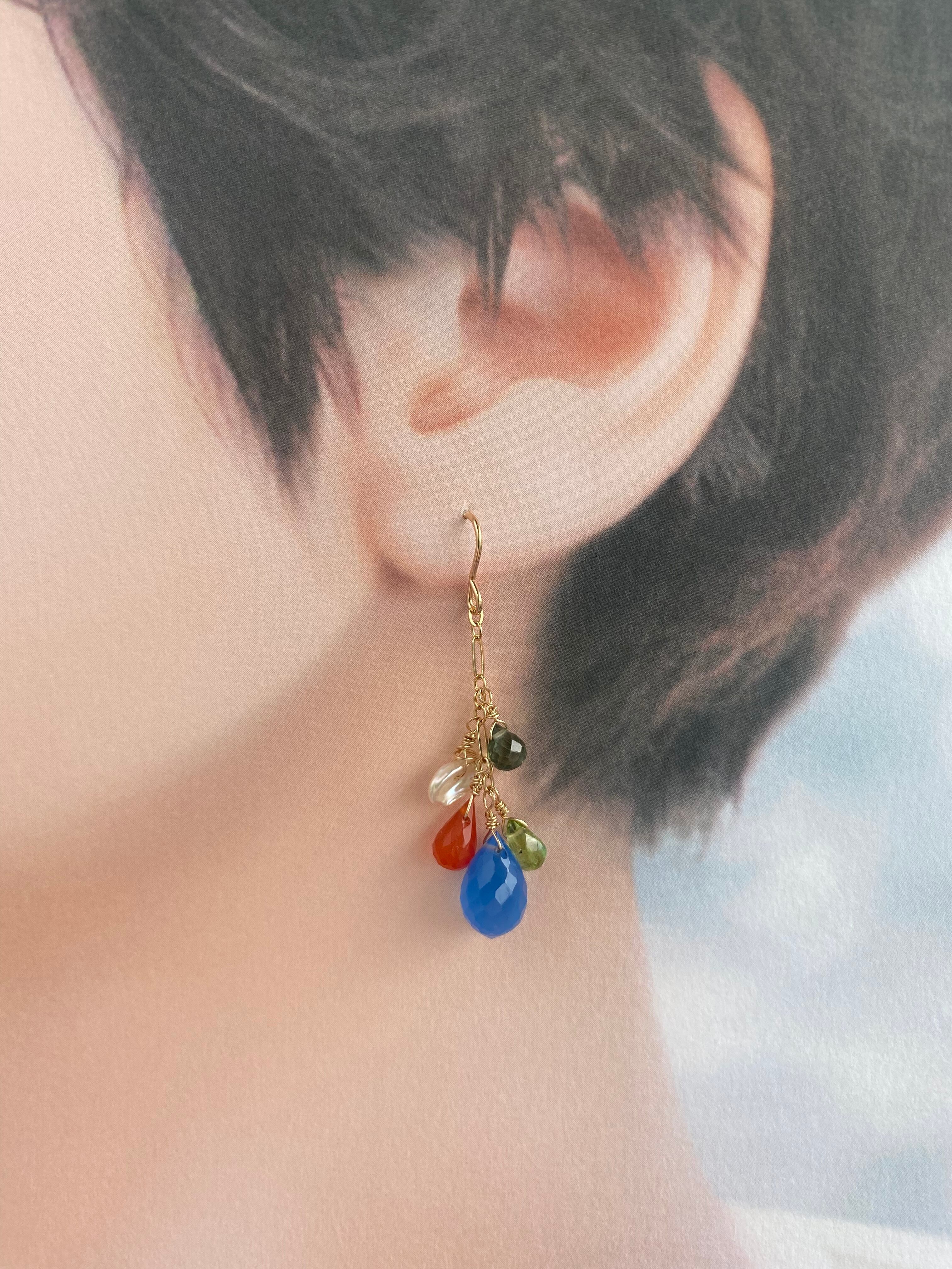 大粒のブルーカルセドニーをメインにしたカラフル天然石ピアスです。